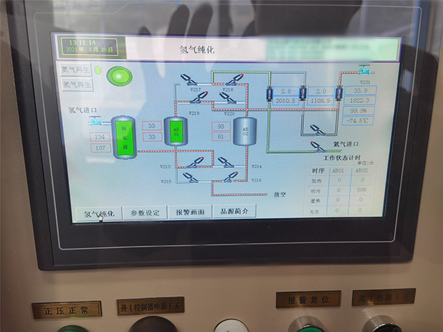 首先做爐內(nèi)氣氛的分析,充分了解客戶(hù)需求,測(cè)量產(chǎn)品對(duì)純度的需求,鑒于液氨的風(fēng)險(xiǎn)性,將氨分解設(shè)備停掉,使用氫氣管束車(chē)供應(yīng)氫氣,為降低成本,管束車(chē)供應(yīng)的是99.99%的氫氣,通過(guò)現(xiàn)場(chǎng)的純化設(shè)備將普氫純化到99.999%使用。